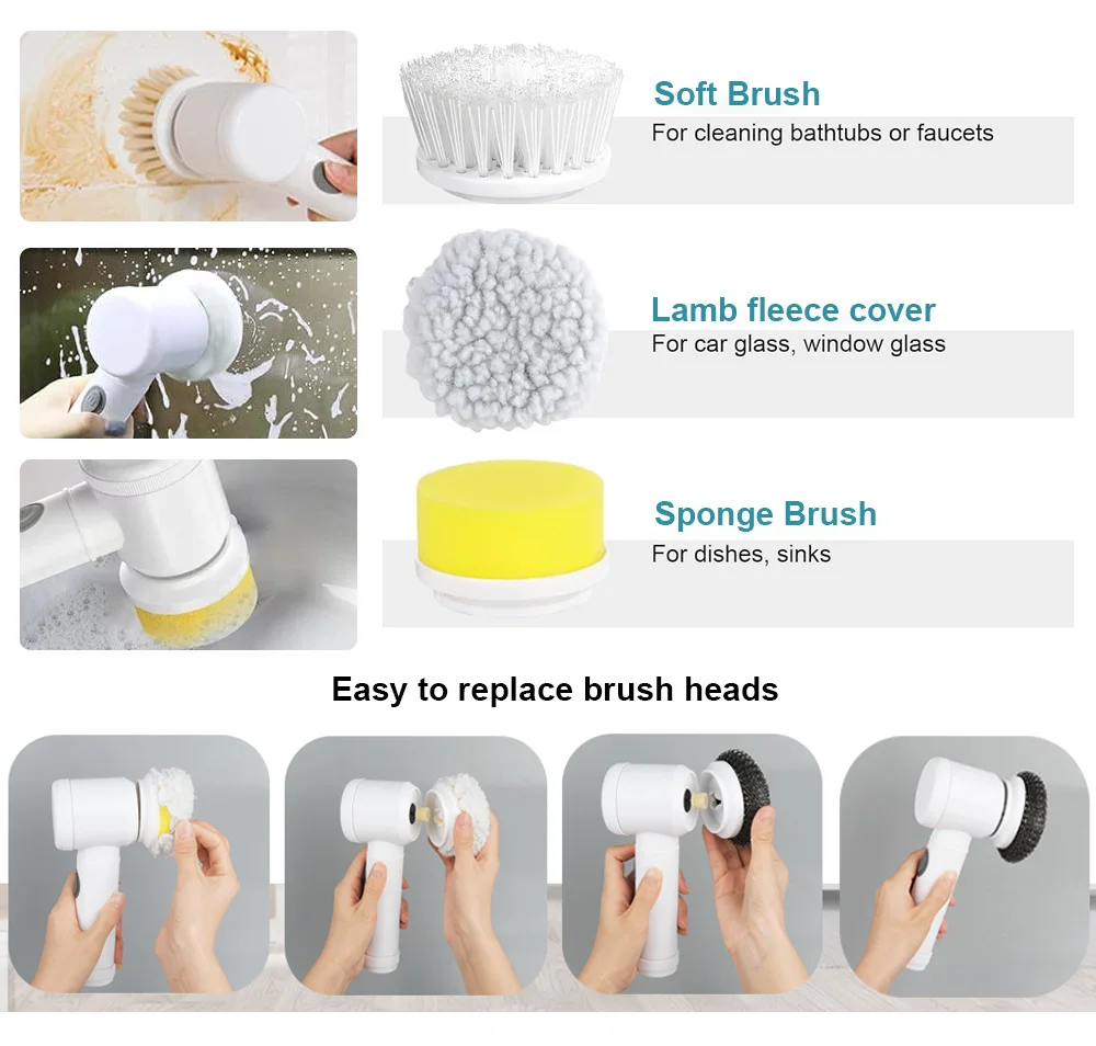 Multifunctional Automatic Dish Spin Electric Cleaning Brush Power Scrubber Electric Spin Scrubber Electric Dish Scrubber